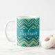Teal and Green Huge Chevron Pattern Custom Name Coffee Mug
