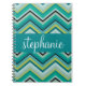 Teal and Green Huge Chevron Pattern Custom Name Notebook