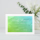 An elegant RSVP response card featuring a watercolor teal blue and green background. Easily personalise with your information. Perfect for a wedding or Bat Mitzvah.