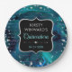 Teal and Iridescent Glitter Letters Quinceanera Paper Plate
