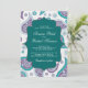 Teal and Mauve Paisley Pattern Indian Wedding Invitation