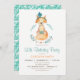 Teal and Orange Girl Fox Birthday Party Invitation