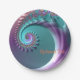 Teal and Purple Spiral Fractal Paper Party Plates