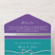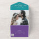 Celebrate your love with understated elegance using our minimalist all-in-one wedding invitation. Featuring sleek calligraphy script in teal and purple hues, it exudes modern charm. The faux silver rope heart adds a touch of sophistication, while the custom picture of the couple on the back infuses intimacy and warmth. Complete with wedding details and an RSVP section, this invitation promises a celebration filled with love and timeless style, where every element reflects the beauty of your unique journey together.