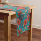 Teal and Red Floral Pattern Short Table Runner
