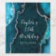 This elegant and glamourous birthday wine label features a teal blue agate marble background with faux silver glitter accents. The text combines handwritten script and modern sans serif fonts for a classy and sophisticated look. This will be perfect for autumn fall and winter birthday parties.