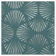 This beautiful Art Deco inspired design showcases silver fan and shell shaped geometric elements on a teal green background.
