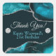 Teal and Silver Glitter Agate Birthday Party Square Sticker