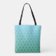 Enhance your style with this trendy tote bag, featuring a white geometric pattern on a teal glossy background. Perfect for carrying your essentials, it adds a stylish, sophisticated touch to any outfit. Explore this tote bag and discover other matching products in the same design to complete the look!