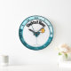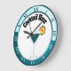 A modern clock with a teal dial and a matching teal martini glass with a straw and a slice of orange is featured in the center. The words, Cocktail Hour, are included in bold print within the clock face. Great for a bar, kitchen, or entertainment area.