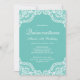 Teal and White Lace Quinceanera, Invitations. These simple and sweet quinceanera invitations are created with lace accents on a teal background that can be changed to any colour of your choice. Additional coordinating Quinceanera party supplies are available at Metro-Events Zazzle shop and Metro-Event.com.