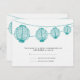 This beautiful wedding invitation features the image of Japanese lanterns hanging across the top in teal blue and white colours. Look for matching Invitations in my shop!