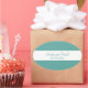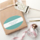 A beautifully personalized sticker in teal and white. Perfect for wedding announcements and save the dates.