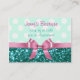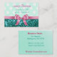 Teal business card with White Polka Dot with Pink Bow & turquoise faux Glitter