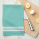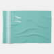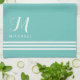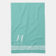 Teal and White Sophisticated Stripes and Monogram Tea Towel