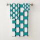 Teal and White Weave Geometric Pattern Bath Towel Set