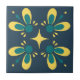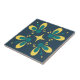 Teal and yellow on Blue Intricate Floral pattern C Ceramic Tile