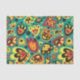 Teal and Yellow Retro 1960s Mod Floral Pattern Tissue Paper