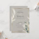 This engagement party invitation features the elegant duo of feathery pampas grass and smokey teal anthurium leaves that are edges in gold - combine this with the rich mushroom taupe background and you have an elegant and memorable wedding theme.