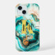 Teal Aqua Agate Golden Custom Modern Monogram iPhone 15 Case