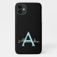 Teal Aqua Blue Girly Script Monogram Name Modern Case-Mate iPhone Case