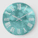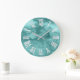 Teal Aqua Blue Gray Silver Roman Numbers Large Clock