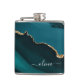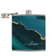 Teal Aqua Blue Green Agate Geode Gold Monogram Hip Flask
