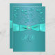 This monogrammed teal and aqua floral wedding invitation has a PRINTED ON ribbon and bow with a PRINTED gemstone and diamond jewels brooch on it that matches the rsvp card shown below. The text is customisable. The paper type is also customisable. If you require any other items in this design, please email your request at niteowlstudio@gmail.com.