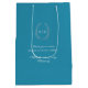 Teal aqua silver leaf oval wreath monogram wedding medium gift bag