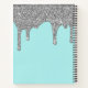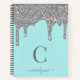 Teal Aqua Silver Sparkle Glitter Drips Monogram Notebook