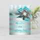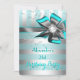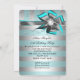 Teal Aqua Silver Stripe Bow Pearl Birthday Party Invitation