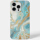 Teal Aqua Turquoise Blue Gold Marble Art Pattern Case-Mate iPhone Case