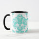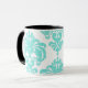 Teal Aqua & White Elegant Chic Damask Pattern Mug