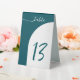 Guide your guests with style using this minimalist wedding table number featuring a bold teal colour block and modern arch design. The clean script “table” header and large handwritten-style number make this tented card both elegant and easy to read. Perfect for modern weddings, receptions, or formal celebrations. Fully customisable to match your event colours and numbering system.