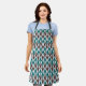 This modern kitchen apron features a seamlessly repeating design of up and down pointing arrows arranged in structured rows. The teal and brown colour scheme adds a touch of masculinity to the bold design.