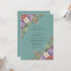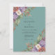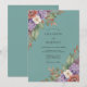 This design features a moody teal background adorned with rich watercolor botanical elements. Clusters of rust-toned roses, purple lilacs, and cream-coloured blossoms create an atmospheric and romantic feel. Soft eucalyptus leaves and earthy foliage finish the look, making it ideal for a sophisticated seasonal event.