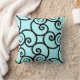 abstract swirl, teal light blue and black decorative pillow Design by Sandy Closs