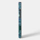This pretty phone case for her offers just enough sparkle and glam to grab attention without the over the top glitz. Blue, teal, and lavender gem like segments form a bright pattern, while glow light beams make it sparkle. A teal blue banner holds your custom text in silver. Unique!