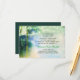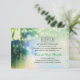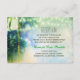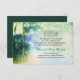 artistic teal beach palms and string lights wedding reception cards.