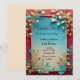 This wedding card showcases a beautiful design with a golden frame adorned with intertwining branches and leaves in beige and teal hues. The background features a gradient from deep red to light blue, creating a vibrant yet harmonious colour palette. The leaves and branches are delicately arranged, some appearing to drip in a stylised, elegant manner. The art style combines elements of modern minimalism with a touch of Art Nouveau, chraacterised by its flowing lines and organic forms, offering a sophisticated and visually captivating invitation. Personalise the text regarding the names and details of the wedding. You can download the card to your mobile device or computer. I designed the card with the help of generative ai.
