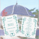 Wedding program bells design. Customise this teal coloured wedding order of service with your wedding details. Should you require any help with customising then contact us through the link on this page. Teal coloured bells design personalised wedding program