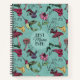 This Teal Best Mum Ever Floral Hummingbird Garden Notebook features an elegant hand-drawn pattern of hummingbirds (colibris), exotic flowers, and enchanted forest mushrooms, all against a light teal background.