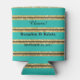 Teal Black and Gold Glitter Stripes | Wedding Can Cooler