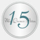 This teal, black, and silver Mis Quince Años sticker matches the Quinceañera invitation shown below. All the text is customisable. You can change the font style and colour. You can also size it up to 3" in diameter, which would be a good size to use to apply to your party favours.