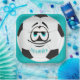 Personalised Soccer Ball Funny Face Party Tableware Set: Paper Plates teal black and white soccer ball funny face.