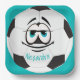 Teal Black and white soccer ball funny face Paper Plate