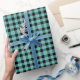 Teal Black Buffalo Plaid Gingham Lumberjack Wrapping Paper