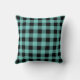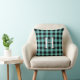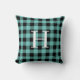 Teal Black Buffalo Plaid Monogram Holiday Cushion