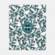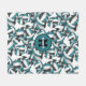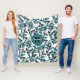 This cool team colours volleyball fleece blanket for girls features a pattern of stylised teal, black and white volleyballs of varying sizes turned every which way on a customisable white background - the volleyballs' teal and black panels are blended with an artsy, girly floral pattern - personalise with athlete's name and monogram or jersey number - by katz_d_zynes