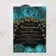 Quinceañera 15th birthday party invitation for girls with beautiful, elegant teal roses/flowers with gold glitter and sparkly star string lights on a black background. Personalise by adding your photo to the back of the card.